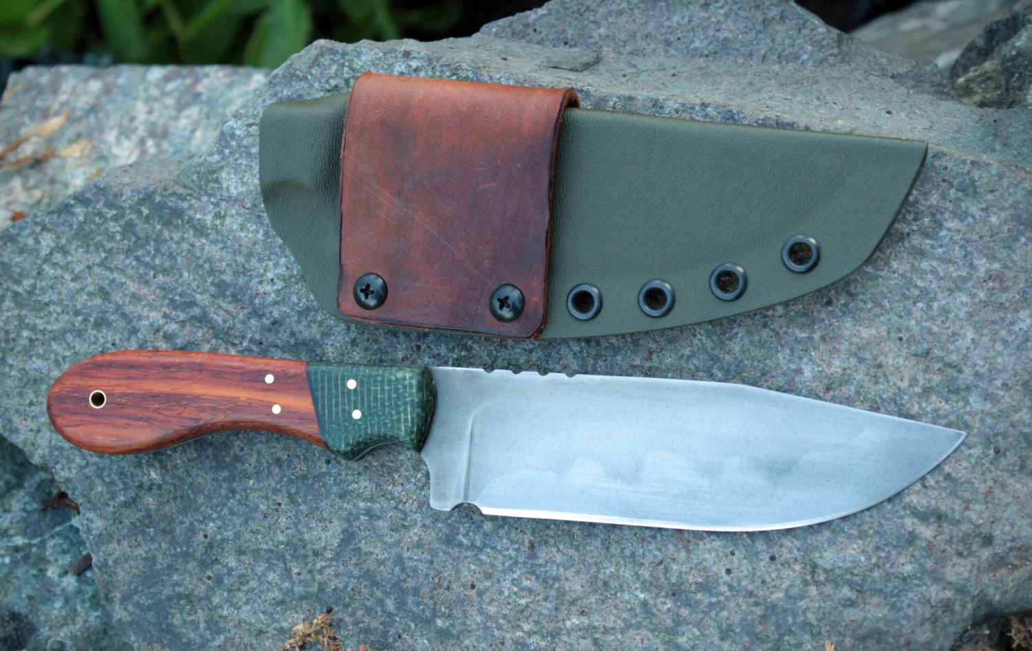 This is a Made To Order custom Frontier Skinner. It measures 10" oal. with a 5" blade. A Kydex sheath is included for safe and convenient carry.